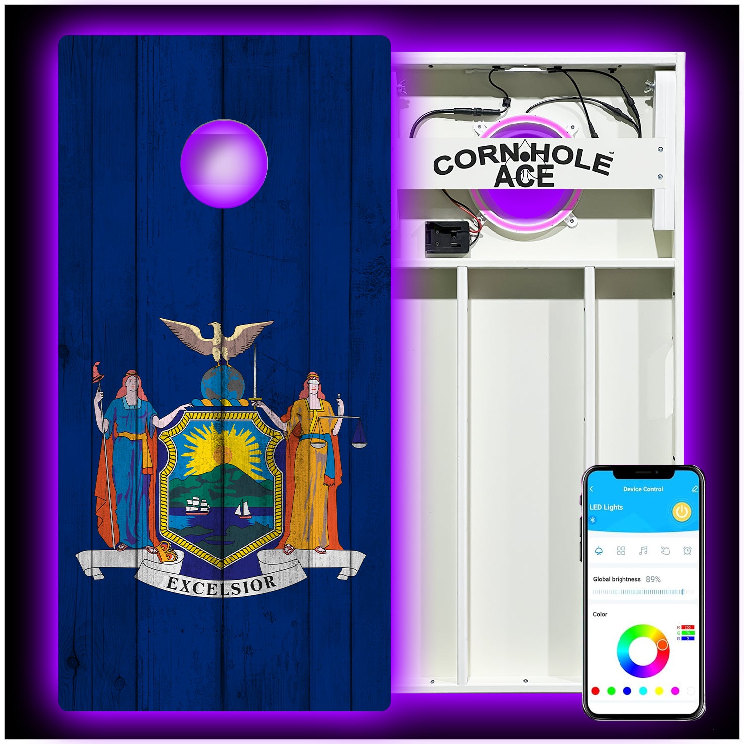 New York State Flag - Cornhole Board Set - All Weather - With Pro Light Kit