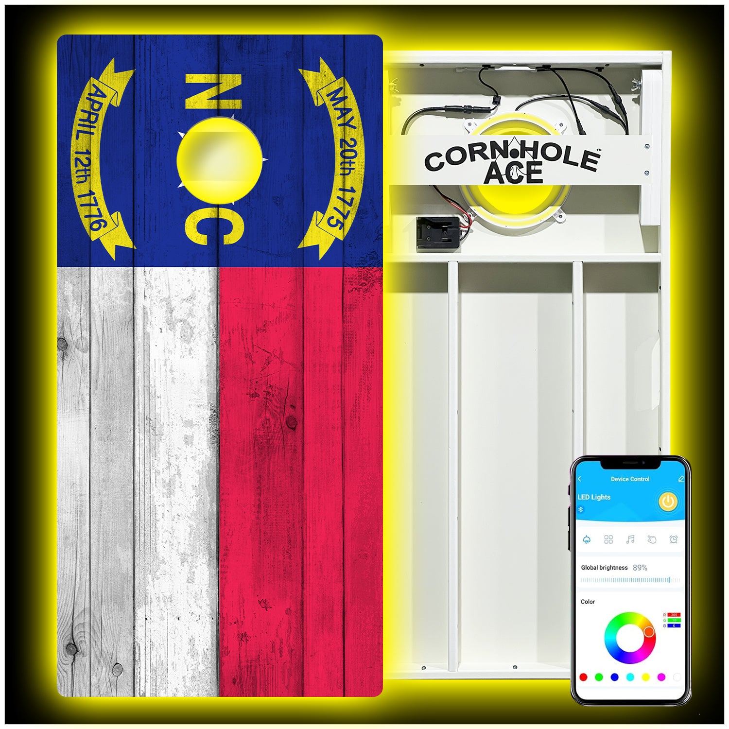 North Carolina State Flag - Cornhole Board Set - All Weather - With Pro Light Kit