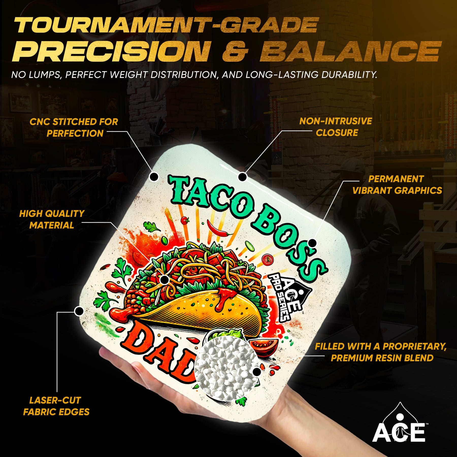 Taco Boss Dad - White Carpet - ACE Pro Carpet Cornhole Bags