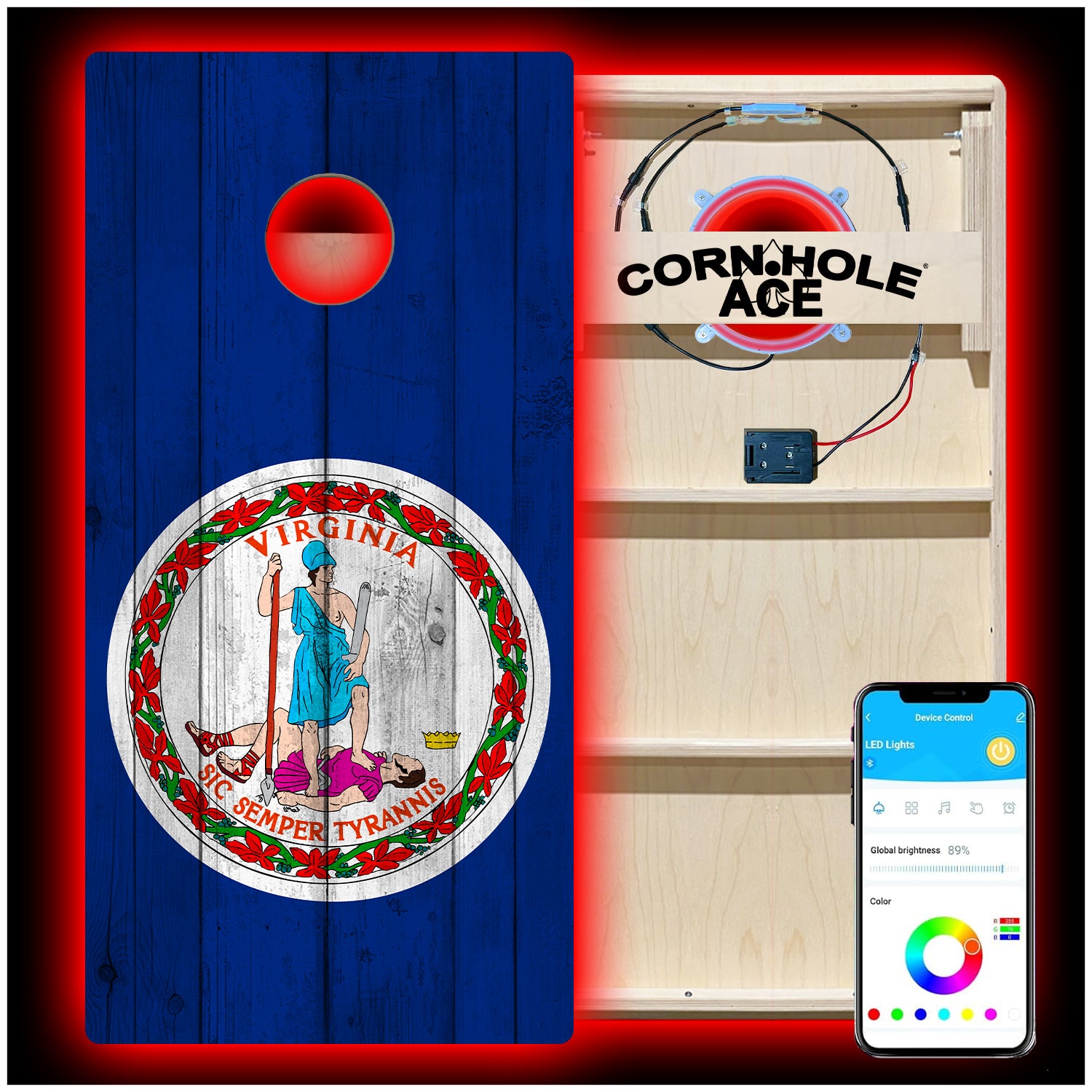 Virginia State Flag - Cornhole Board Set - Professional - With Pro Light Kit