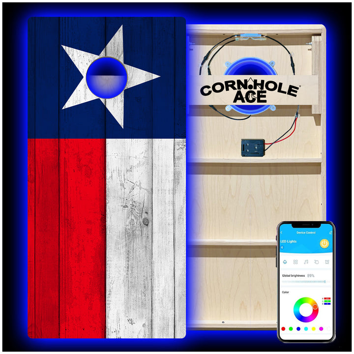 Texas State Flag - Cornhole Board Set - Professional - With Pro Light Kit