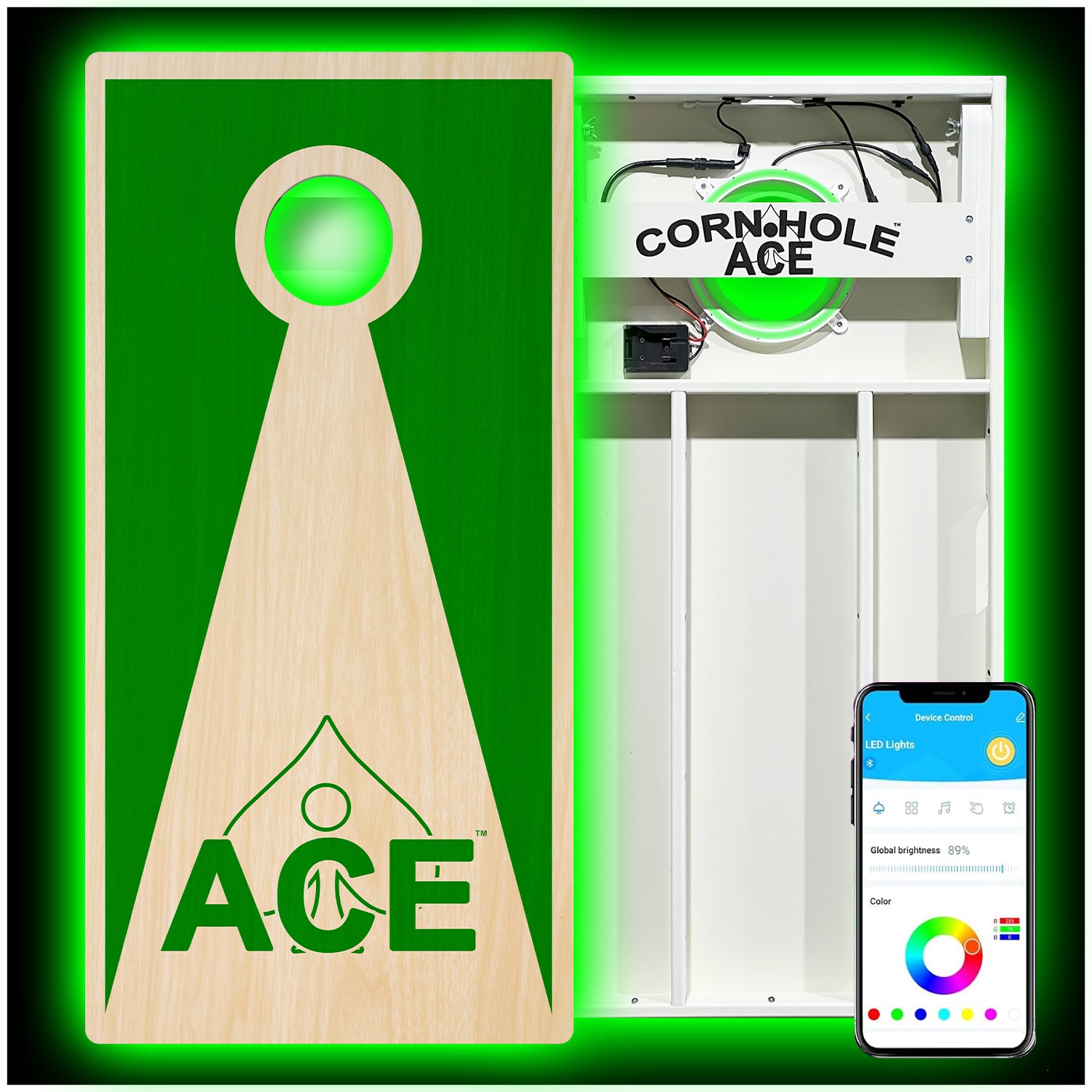 Green ACE Inverse Triangle - Cornhole Board Set - All Weather - With Pro Light Kit