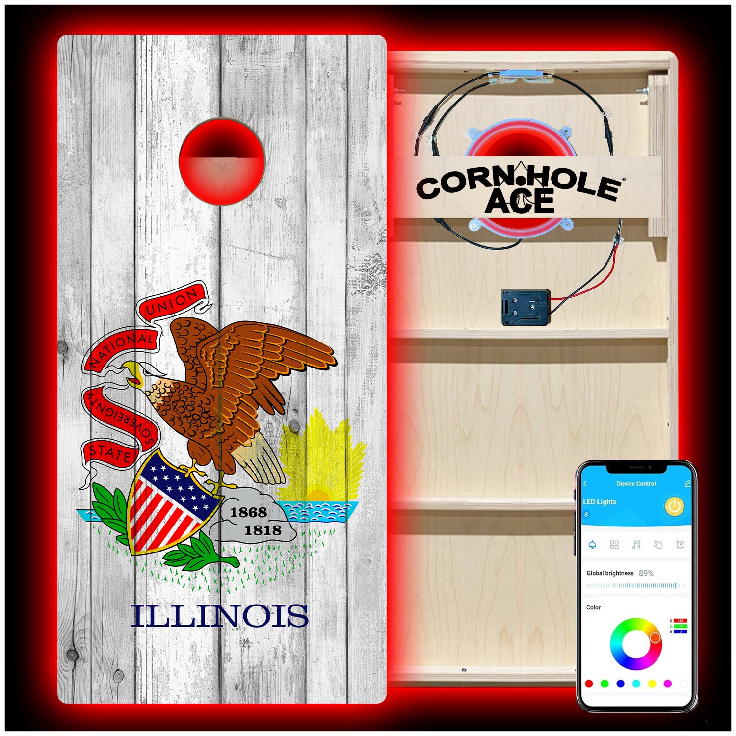 Illinois State Flag - Cornhole Board Set - Professional - With Pro Light Kit