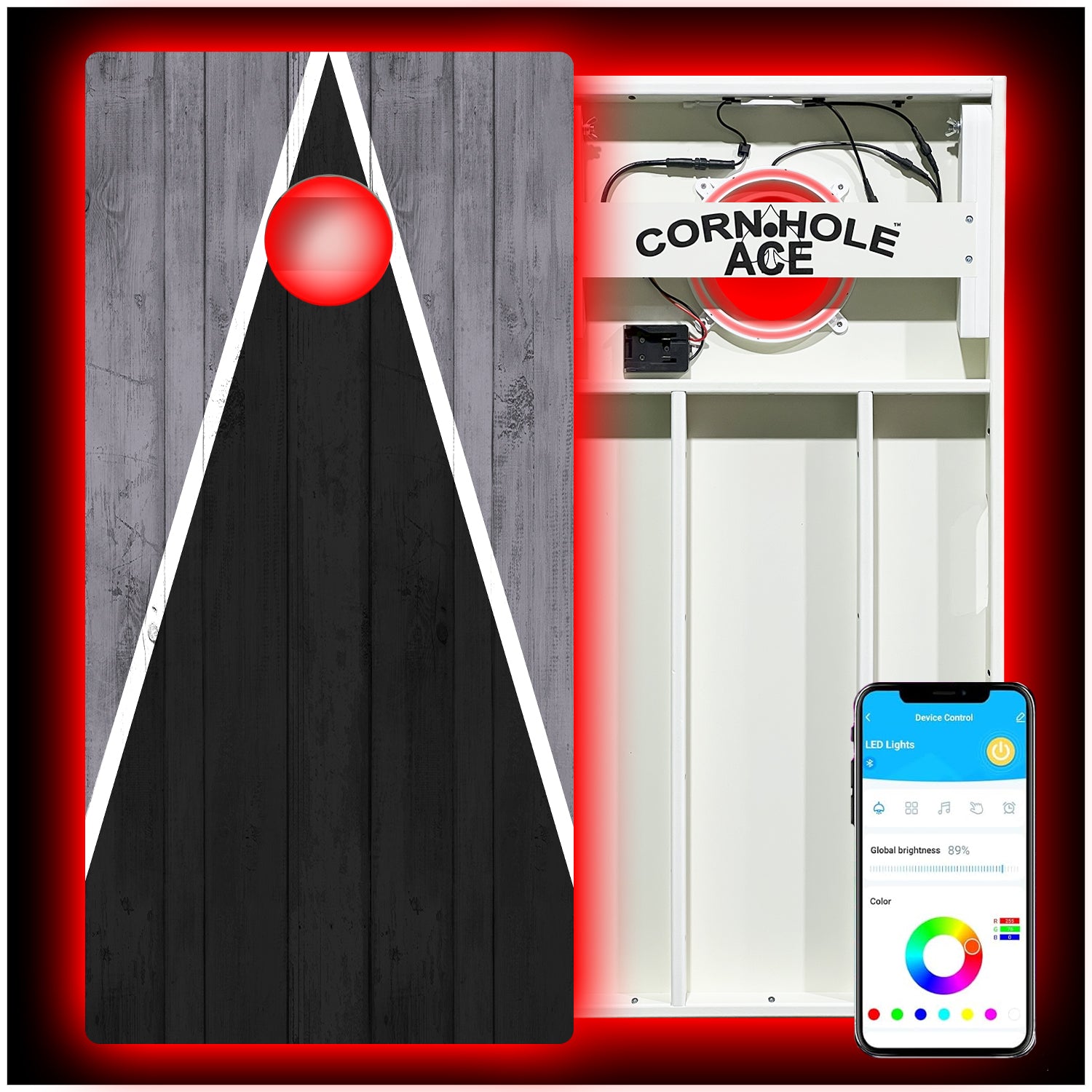 • Two (2) All-Weather Pro Cornhole Boards with pre-installed LED Light Kits