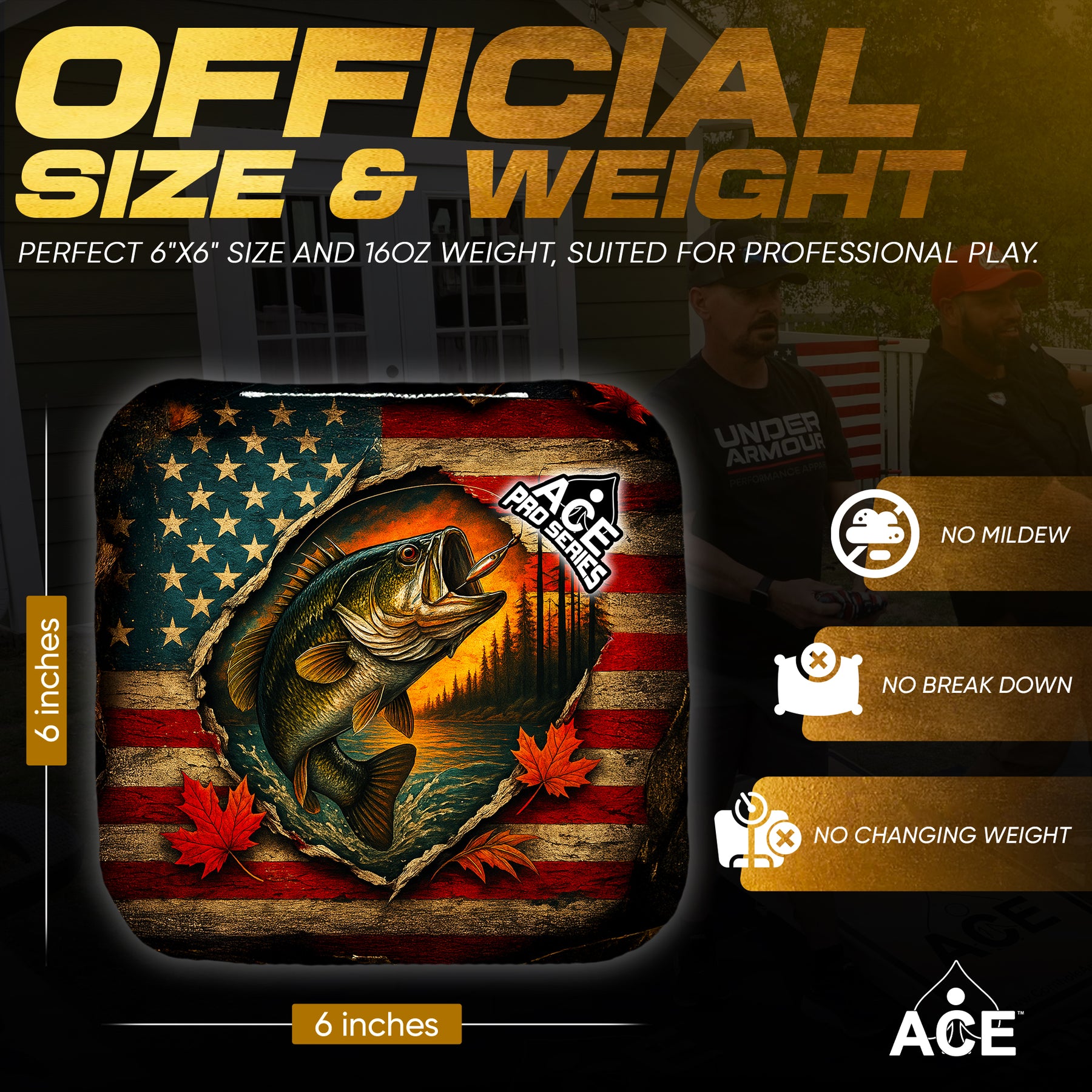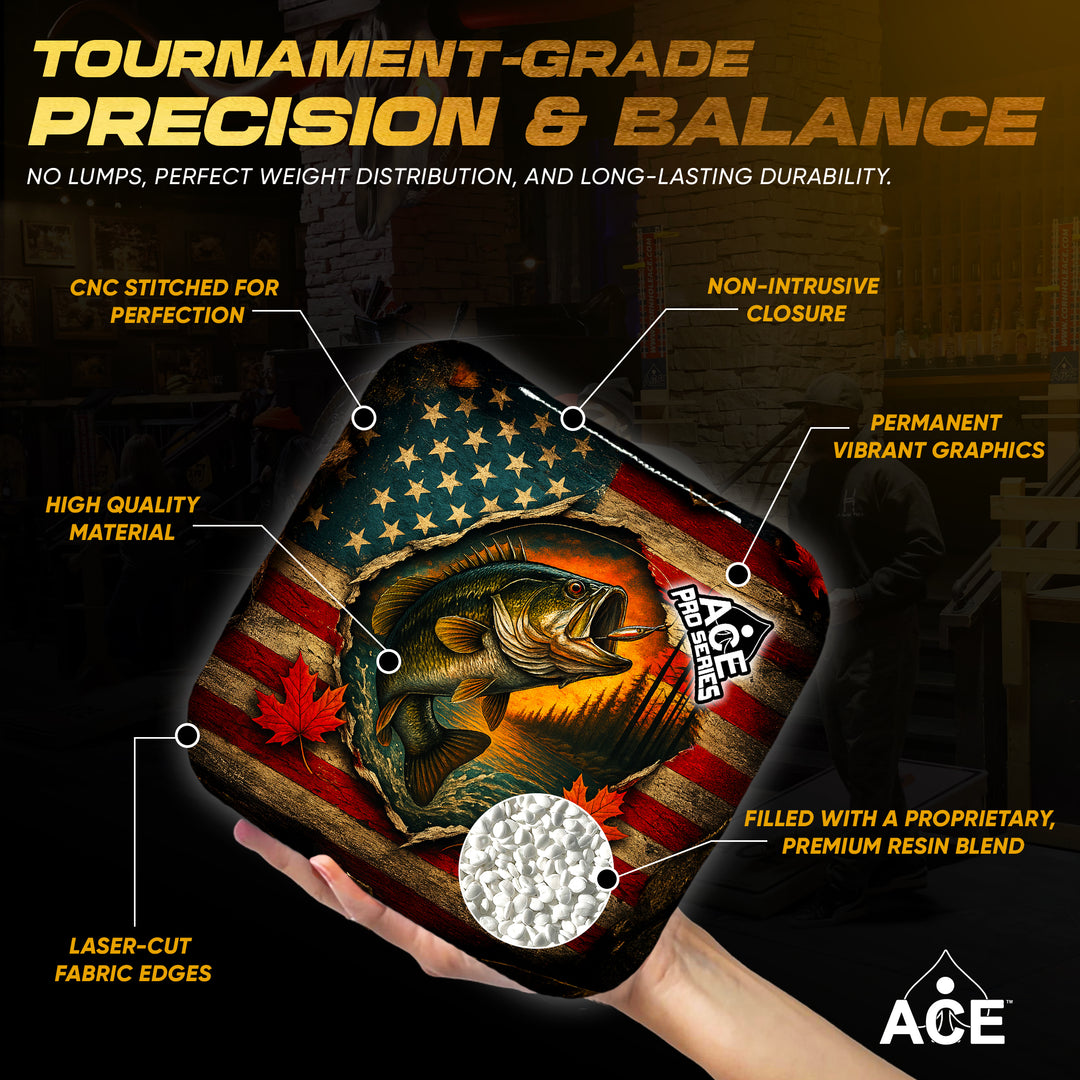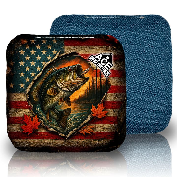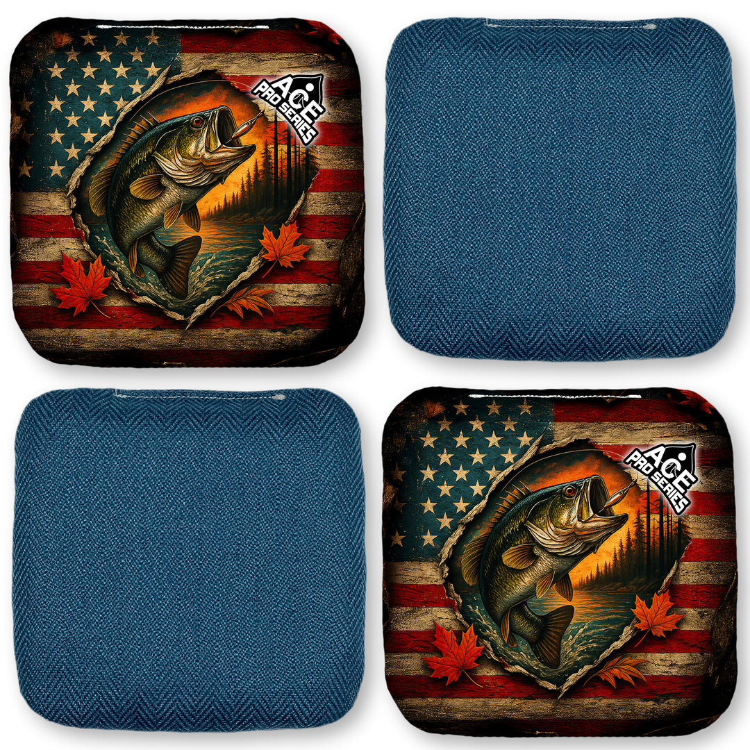 Stars, Stripes, and Bass Fishing - Navy Blue Carpet - ACE Pro Carpet Cornhole Bags