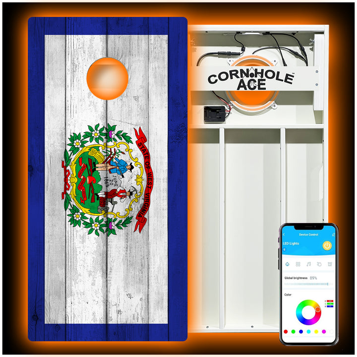 West Virginia State Flag - Cornhole Board Set - All Weather - With Pro Light Kit